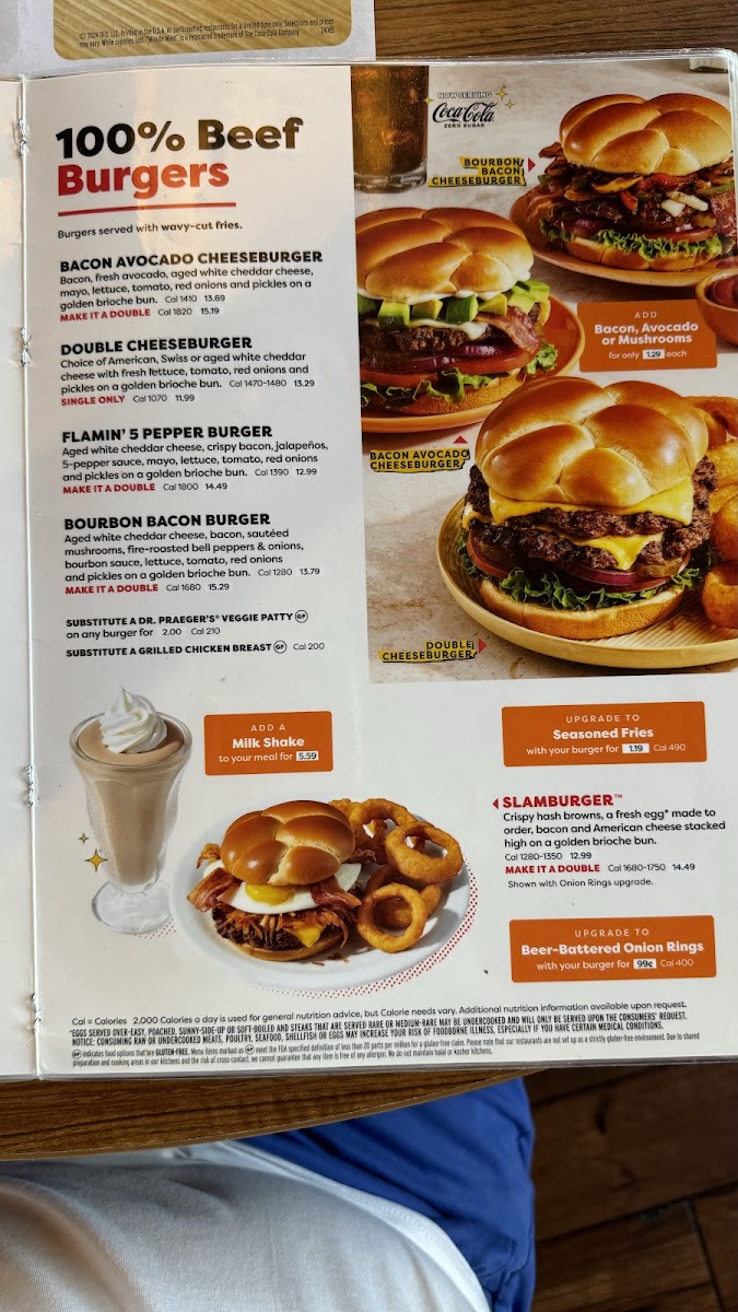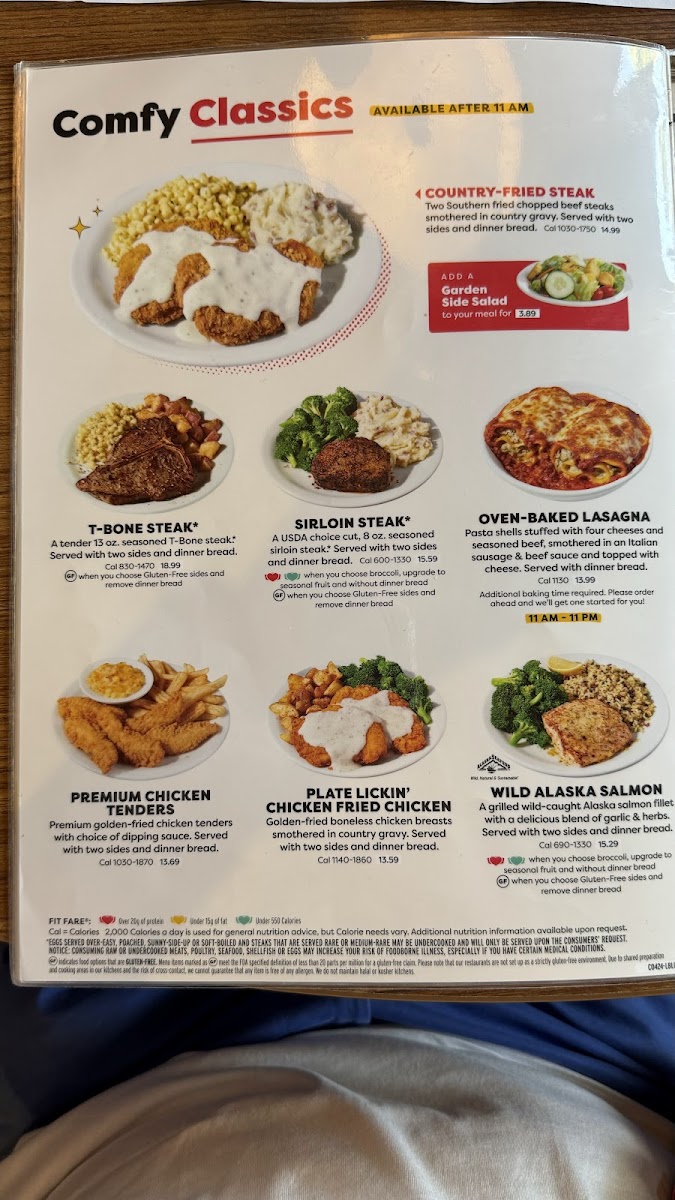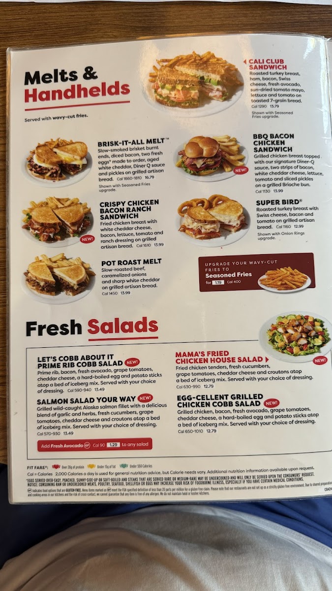 Start your day with the beloved Scrambled Eggs & Cheddar Breakfast, featuring fluffy eggs paired with crispy bacon and delectable pancakes. For lunch, try the Prime Rib Cobb Salad, a refreshing mix of flavors, or indulge in Mama's Fried Chicken House Salad for a satisfying crunch.